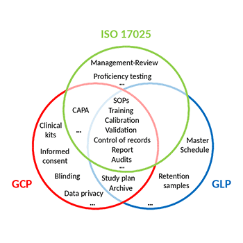 IMGM is a testing laboratory specialized in genetic analyses. We work according to international standards including Good Laboratory Practice (GLP) and the General requirements for the competence of testing and calibration laboratories (ISO°17025). To comply with Good Clinical (Laboratory) Practice (GC(L)P) IMGM follows ICH guidelines, EMA guidelines, FDA guidances and relevant legislation related to the analysis of clinical trial samples.