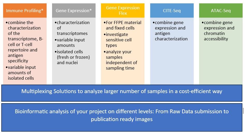 As a certified service provider for 10x Genomics 3′ Gene Expression and 5′ Immune Profiling workflow, IMGM is at the forefront of single cell analysis with an experienced team of PhD-level scientists.